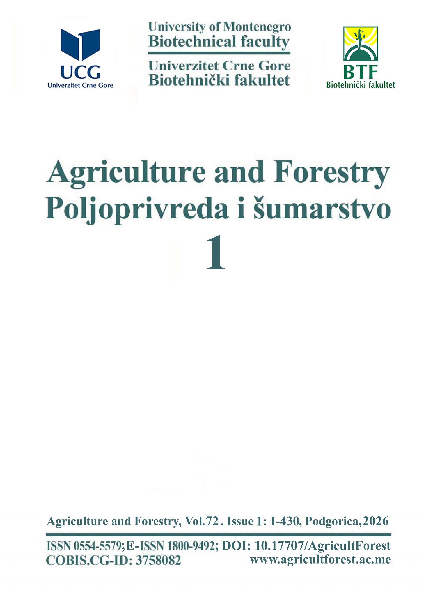 Title: Agriculture and Forestry Alternative title: Poljoprivreda i sumarstvo Publisher: Biotechnical Faculty Web address: www.agricultforest.ac.me Frequency: Quarterly (4 issues per year) |